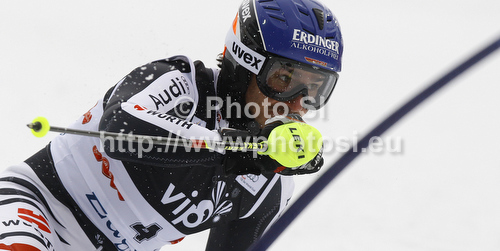 : Felix Neureuther of Germany skiing in first run of men slalom race of Audi FIS Alpine skiing World cup in Zagreb, Croatia. Men slalom race of Audi FIS Alpine skiing World cup was held on Sljeme above Zagreb, Croatia, on Thursday, 5th of January 2012.