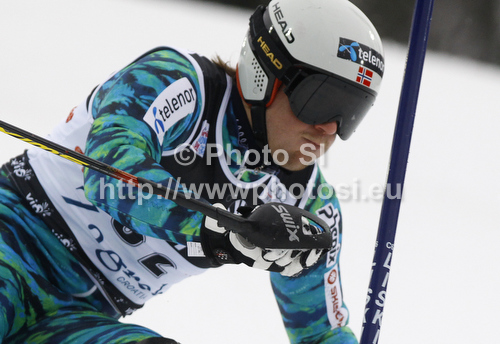 : Kjetil Jansrud of Norway skiing in first run of men slalom race of Audi FIS Alpine skiing World cup in Zagreb, Croatia. Men slalom race of Audi FIS Alpine skiing World cup was held on Sljeme above Zagreb, Croatia, on Thursday, 5th of January 2012.