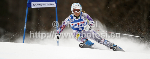 Kranjska Gora ,Slovenia - 21.01.2012 : Julia Mancuso of USA skiing in first run of women giant slalom race of Audi FIS Alpine skiing World cup in Kranjska Gora, Slovenia. Traditional Golden fox trophy women giant slalom race of Audi FIS Alpine skiing World cup, which was scheduled to be run in Maribor, Slovenia, was moved to Kranjska Gora, Slovenia, due warm weather and lack of snow in Maribor, and was held in Kranjska Gora, Slovenia, on Saturday, 21st of January 2012. Photo by: Primoz Jeroncic