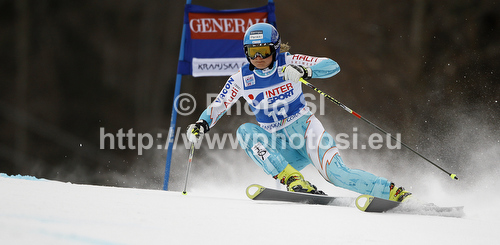 Kranjska Gora ,Slovenia - 21.01.2012 : Tanja Poutiainen of Finland skiing in first run of women giant slalom race of Audi FIS Alpine skiing World cup in Kranjska Gora, Slovenia. Traditional Golden fox trophy women giant slalom race of Audi FIS Alpine skiing World cup, which was scheduled to be run in Maribor, Slovenia, was moved to Kranjska Gora, Slovenia, due warm weather and lack of snow in Maribor, and was held in Kranjska Gora, Slovenia, on Saturday, 21st of January 2012. Photo by: Primoz Jeroncic