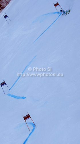 : Tanja Poutiainen of Finland skiing in second run of women giant slalom race of Audi FIS Alpine skiing World cup in Kranjska Gora, Slovenia. Traditional Golden fox trophy women giant slalom race of Audi FIS Alpine skiing World cup, which was scheduled to be run in Maribor, Slovenia, was moved to Kranjska Gora, Slovenia, due warm weather and lack of snow in Maribor, and was held in Kranjska Gora, Slovenia, on Saturday, 21st of January 2012.