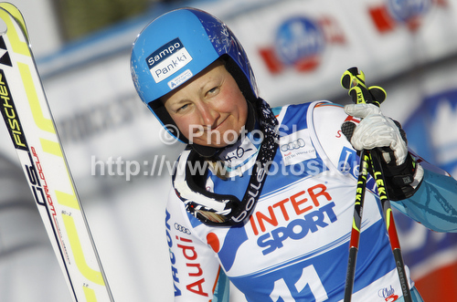 Kranjska Gora ,Slovenia - 21.01.2012 : Tanja Poutiainen of Finland reacts in finish of second run of women giant slalom race of Audi FIS Alpine skiing World cup in Kranjska Gora, Slovenia. Traditional Golden fox trophy women giant slalom race of Audi FIS Alpine skiing World cup, which was scheduled to be run in Maribor, Slovenia, was moved to Kranjska Gora, Slovenia, due warm weather and lack of snow in Maribor, and was held in Kranjska Gora, Slovenia, on Saturday, 21st of January 2012. Photo by: Primoz Jeroncic