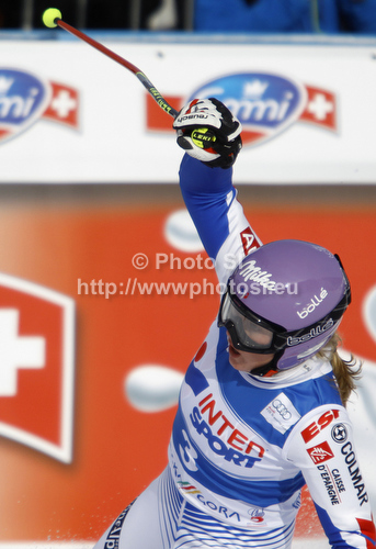 Kranjska Gora ,Slovenia - 21.01.2012 : Winner Tessa Worley of France reacts in finish of second run of women giant slalom race of Audi FIS Alpine skiing World cup in Kranjska Gora, Slovenia. Traditional Golden fox trophy women giant slalom race of Audi FIS Alpine skiing World cup, which was scheduled to be run in Maribor, Slovenia, was moved to Kranjska Gora, Slovenia, due warm weather and lack of snow in Maribor, and was held in Kranjska Gora, Slovenia, on Saturday, 21st of January 2012. Photo by: Primoz Jeroncic