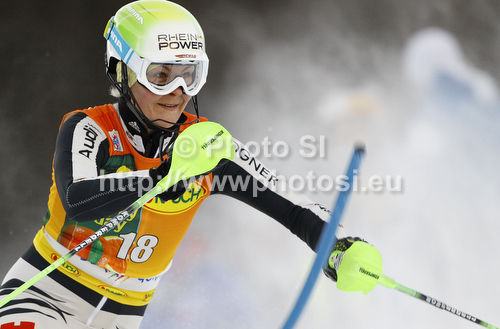 Kranjska Gora ,Slovenia - 22.01.2012 : Fanny Chmelar of Germany skiing in first run of women slalom race of Audi FIS Alpine skiing World cup in Kranjska Gora, Slovenia. Traditional Golden fox trophy women slalom race of Audi FIS Alpine skiing World cup, which was scheduled to be run in Maribor, Slovenia, was moved to Kranjska Gora, Slovenia, due warm weather and lack of snow in Maribor, and was held in Kranjska Gora, Slovenia, on Sunday, 22nd of January 2012. Photo by: Primoz Jeroncic