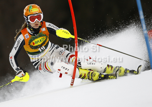 Kranjska Gora ,Slovenia - 22.01.2012 : Lena Duerr of Germany skiing in first run of women slalom race of Audi FIS Alpine skiing World cup in Kranjska Gora, Slovenia. Traditional Golden fox trophy women slalom race of Audi FIS Alpine skiing World cup, which was scheduled to be run in Maribor, Slovenia, was moved to Kranjska Gora, Slovenia, due warm weather and lack of snow in Maribor, and was held in Kranjska Gora, Slovenia, on Sunday, 22nd of January 2012. Photo by: Primoz Jeroncic
