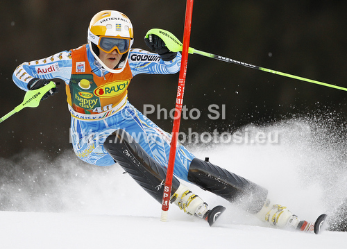 Kranjska Gora ,Slovenia - 22.01.2012 : Anna Swenn-Larsson of Sweden skiing in first run of women slalom race of Audi FIS Alpine skiing World cup in Kranjska Gora, Slovenia. Traditional Golden fox trophy women slalom race of Audi FIS Alpine skiing World cup, which was scheduled to be run in Maribor, Slovenia, was moved to Kranjska Gora, Slovenia, due warm weather and lack of snow in Maribor, and was held in Kranjska Gora, Slovenia, on Sunday, 22nd of January 2012. Photo by: Primoz Jeroncic