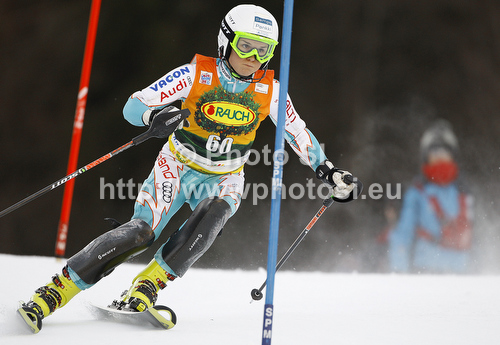 Kranjska Gora ,Slovenia - 22.01.2012 : Merle Soppela of Finland skiing in first run of women slalom race of Audi FIS Alpine skiing World cup in Kranjska Gora, Slovenia. Traditional Golden fox trophy women slalom race of Audi FIS Alpine skiing World cup, which was scheduled to be run in Maribor, Slovenia, was moved to Kranjska Gora, Slovenia, due warm weather and lack of snow in Maribor, and was held in Kranjska Gora, Slovenia, on Sunday, 22nd of January 2012. Photo by: Primoz Jeroncic