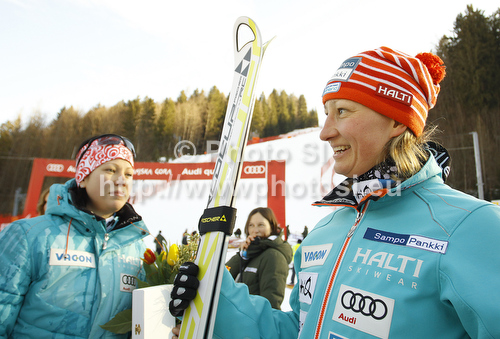 : Second placed Tanja Poutiainen of Finland after women slalom race of Audi FIS Alpine skiing World cup in Kranjska Gora, Slovenia. Traditional Golden fox trophy women slalom race of Audi FIS Alpine skiing World cup, which was scheduled to be run in Maribor, Slovenia, was moved to Kranjska Gora, Slovenia, due warm weather and lack of snow in Maribor, and was held in Kranjska Gora, Slovenia, on Sunday, 22nd of January 2012.
