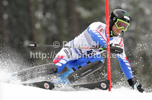 : Gabriel Rivas of France skiing in the first run of the Men Slalom race of Audi FIS alpine skiing World Cup in Kitzbuhel, Austria. Men Slalom race of Men Audi FIS Alpine skiing World Cup 2011 / 2012, was held on Sunday, 22nd of Januar 2012, on Ganslernhang course in Kitzbuhel, Austria.