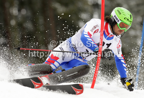 : Nicolas Thoule of France skiing in the first run of the Men Slalom race of Audi FIS alpine skiing World Cup in Kitzbuhel, Austria. Men Slalom race of Men Audi FIS Alpine skiing World Cup 2011 / 2012, was held on Sunday, 22nd of Januar 2012, on Ganslernhang course in Kitzbuhel, Austria.