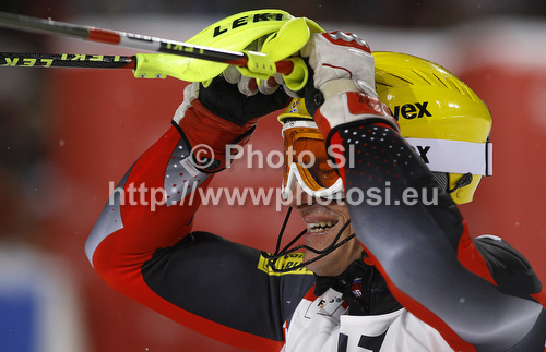 : Fourth placed Ivica Kostelic of Croatia reacts in finish of second run of men slalom race of Audi FIS Alpine skiing World cup in Schladming, Austria. Traditional The Nightrace, men slalom race of Audi FIS Alpine skiing World cup, was held in Schladming, Austria, on Tuesday, 24th of January 2012.