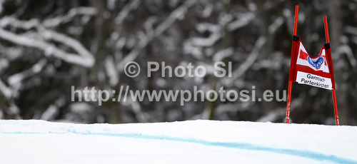 : Race course for training run for men downhill race of Audi FIS Alpine skiing World cup in Garmisch-Partenkirchen, Germany. Training for men downhill race of Audi FIS Alpine skiing World cup, was held in Garmisch-Partenkirchen, Germany, on Friday, 27th of January 2012.
