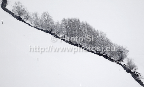 : Surrounding of race course for training run for men downhill race of Audi FIS Alpine skiing World cup in Garmisch-Partenkirchen, Germany. Training for men downhill race of Audi FIS Alpine skiing World cup, was held in Garmisch-Partenkirchen, Germany, on Friday, 27th of January 2012.