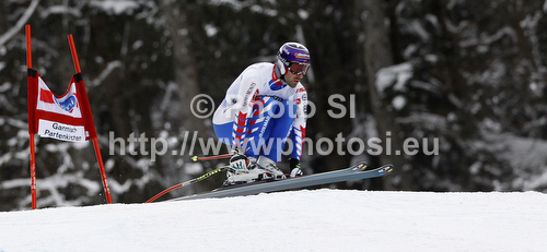 : Adrien Theaux of France skiing in training run for men downhill race of Audi FIS Alpine skiing World cup in Garmisch-Partenkirchen, Germany. Training for men downhill race of Audi FIS Alpine skiing World cup, was held in Garmisch-Partenkirchen, Germany, on Friday, 27th of January 2012.
