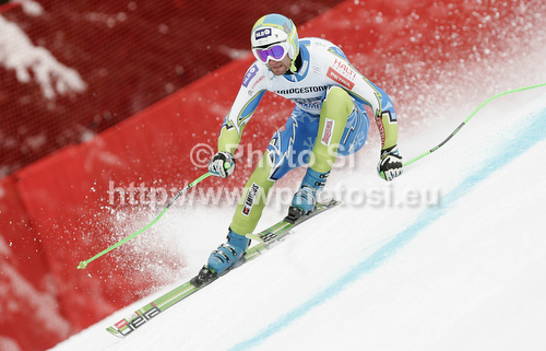 : Gasper Markic of Slovenia skiing in training run for men downhill race of Audi FIS Alpine skiing World cup in Garmisch-Partenkirchen, Germany. Training for men downhill race of Audi FIS Alpine skiing World cup, was held in Garmisch-Partenkirchen, Germany, on Friday, 27th of January 2012.