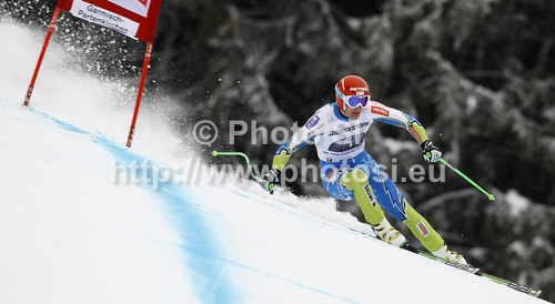: Andrej Sporn of Slovenia skiing in men downhill race of Audi FIS Alpine skiing World cup in Garmisch-Partenkirchen, Germany. Men downhill race of Audi FIS Alpine skiing World cup, was held in Garmisch-Partenkirchen, Germany, on Saturday, 28th of January 2012.