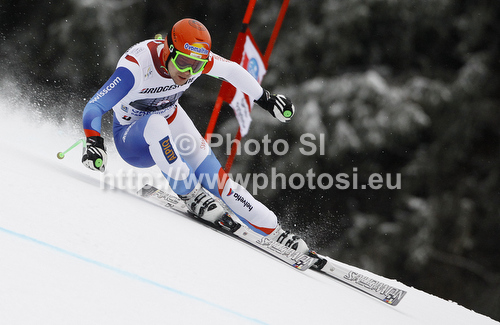 : Patrick Kueng of Switzerland skiing in men downhill race of Audi FIS Alpine skiing World cup in Garmisch-Partenkirchen, Germany. Men downhill race of Audi FIS Alpine skiing World cup, was held in Garmisch-Partenkirchen, Germany, on Saturday, 28th of January 2012.