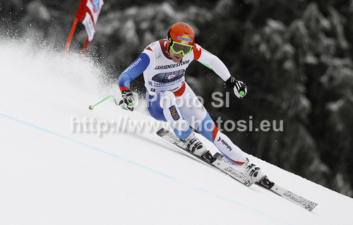 : Patrick Kueng of Switzerland skiing in men downhill race of Audi FIS Alpine skiing World cup in Garmisch-Partenkirchen, Germany. Men downhill race of Audi FIS Alpine skiing World cup, was held in Garmisch-Partenkirchen, Germany, on Saturday, 28th of January 2012.