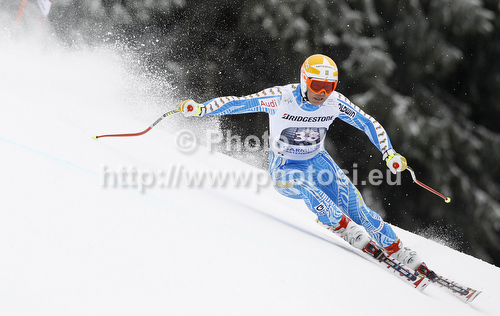 : Patrik Jaerbyn of Sweden skiing in men downhill race of Audi FIS Alpine skiing World cup in Garmisch-Partenkirchen, Germany. Men downhill race of Audi FIS Alpine skiing World cup, was held in Garmisch-Partenkirchen, Germany, on Saturday, 28th of January 2012.