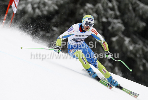 : Gasper Markic of Slovenia skiing in men downhill race of Audi FIS Alpine skiing World cup in Garmisch-Partenkirchen, Germany. Men downhill race of Audi FIS Alpine skiing World cup, was held in Garmisch-Partenkirchen, Germany, on Saturday, 28th of January 2012.