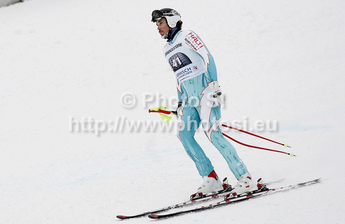 : Andreas Romar of Finland reacts in finish of men downhill race of Audi FIS Alpine skiing World cup in Garmisch-Partenkirchen, Germany. Men downhill race of Audi FIS Alpine skiing World cup, was held in Garmisch-Partenkirchen, Germany, on Saturday, 28th of January 2012.