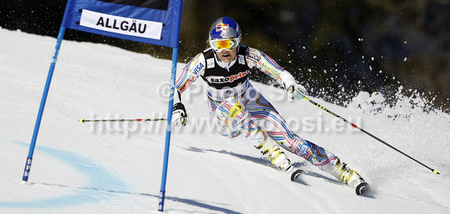 : Lindsey Vonn of USA skiing in first run of women giant slalom race of Audi FIS Alpine skiing World cup in Ofterschwang, Germany. Women giant slalom race of Audi FIS Alpine skiing World cup, which replaced canceled race of Soldeau, Andora, was held in Ofterschwang, Germany, on Friday, 2nd of March 2012.