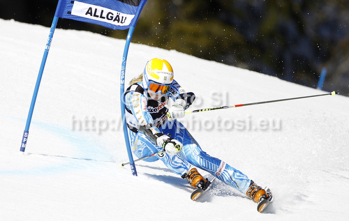 : Jessica Lindell-Vikarby of Sweden skiing in first run of women giant slalom race of Audi FIS Alpine skiing World cup in Ofterschwang, Germany. Women giant slalom race of Audi FIS Alpine skiing World cup, which replaced canceled race of Soldeau, Andora, was held in Ofterschwang, Germany, on Friday, 2nd of March 2012.
