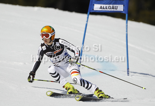 : Lena Duerr of Germany skiing in first run of women giant slalom race of Audi FIS Alpine skiing World cup in Ofterschwang, Germany. Women giant slalom race of Audi FIS Alpine skiing World cup, which replaced canceled race of Soldeau, Andora, was held in Ofterschwang, Germany, on Friday, 2nd of March 2012.