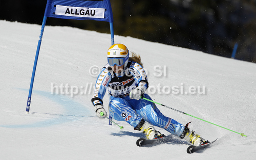 : Anja Paerson of Sweden skiing in first run of women giant slalom race of Audi FIS Alpine skiing World cup in Ofterschwang, Germany. Women giant slalom race of Audi FIS Alpine skiing World cup, which replaced canceled race of Soldeau, Andora, was held in Ofterschwang, Germany, on Friday, 2nd of March 2012.