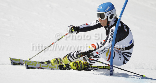 : Veronique Hronek of Germany skiing in first run of women giant slalom race of Audi FIS Alpine skiing World cup in Ofterschwang, Germany. Women giant slalom race of Audi FIS Alpine skiing World cup, which replaced canceled race of Soldeau, Andora, was held in Ofterschwang, Germany, on Friday, 2nd of March 2012.