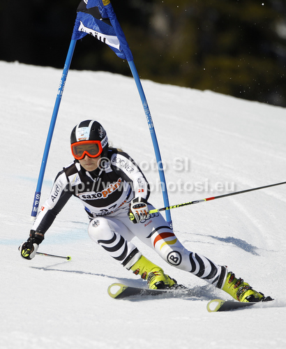 : Veronika Staber of Germany skiing in first run of women giant slalom race of Audi FIS Alpine skiing World cup in Ofterschwang, Germany. Women giant slalom race of Audi FIS Alpine skiing World cup, which replaced canceled race of Soldeau, Andora, was held in Ofterschwang, Germany, on Friday, 2nd of March 2012.