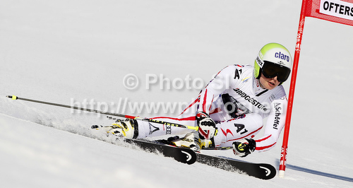 : Anna Fenninger of Austria skiing in first run of women giant slalom race of Audi FIS Alpine skiing World cup in Ofterschwang, Germany. Women giant slalom race of Audi FIS Alpine skiing World cup was held in Ofterschwang, Germany, on Saturday, 3rd of March 2012.