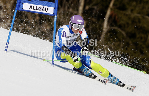 : Tina Maze of Slovenia skiing in first run of women giant slalom race of Audi FIS Alpine skiing World cup in Ofterschwang, Germany. Women giant slalom race of Audi FIS Alpine skiing World cup was held in Ofterschwang, Germany, on Saturday, 3rd of March 2012.