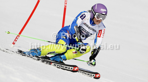 : Tina Maze of Slovenia skiing in first run of women giant slalom race of Audi FIS Alpine skiing World cup in Ofterschwang, Germany. Women giant slalom race of Audi FIS Alpine skiing World cup was held in Ofterschwang, Germany, on Saturday, 3rd of March 2012.
