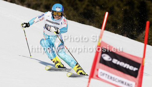 : Tanja Poutiainen of Finland skiing in first run of women giant slalom race of Audi FIS Alpine skiing World cup in Ofterschwang, Germany. Women giant slalom race of Audi FIS Alpine skiing World cup was held in Ofterschwang, Germany, on Saturday, 3rd of March 2012.
