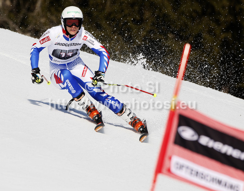 : Taina Barioz of France skiing in first run of women giant slalom race of Audi FIS Alpine skiing World cup in Ofterschwang, Germany. Women giant slalom race of Audi FIS Alpine skiing World cup was held in Ofterschwang, Germany, on Saturday, 3rd of March 2012.