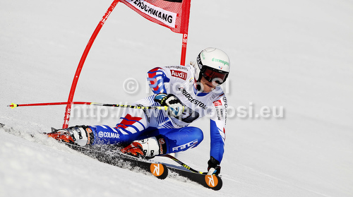 : Taina Barioz of France skiing in first run of women giant slalom race of Audi FIS Alpine skiing World cup in Ofterschwang, Germany. Women giant slalom race of Audi FIS Alpine skiing World cup was held in Ofterschwang, Germany, on Saturday, 3rd of March 2012.