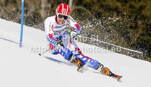 : Anemone Marmottan of France skiing in first run of women giant slalom race of Audi FIS Alpine skiing World cup in Ofterschwang, Germany. Women giant slalom race of Audi FIS Alpine skiing World cup was held in Ofterschwang, Germany, on Saturday, 3rd of March 2012.