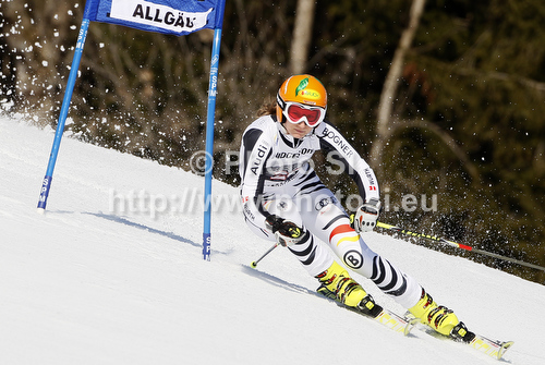 : Lena Duerr of Germany skiing in first run of women giant slalom race of Audi FIS Alpine skiing World cup in Ofterschwang, Germany. Women giant slalom race of Audi FIS Alpine skiing World cup was held in Ofterschwang, Germany, on Saturday, 3rd of March 2012.
