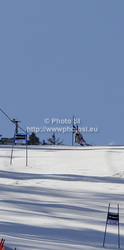 : Winner Viktoria Rebensburg of Germany skiing in second run of women giant slalom race of Audi FIS Alpine skiing World cup in Ofterschwang, Germany. Women giant slalom race of Audi FIS Alpine skiing World cup was held in Ofterschwang, Germany, on Saturday, 3rd of March 2012.