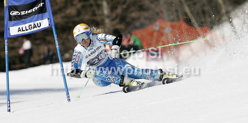 : Anja Paerson of Sweden skiing in first run of women giant slalom race of Audi FIS Alpine skiing World cup in Ofterschwang, Germany. Women giant slalom race of Audi FIS Alpine skiing World cup was held in Ofterschwang, Germany, on Saturday, 3rd of March 2012.