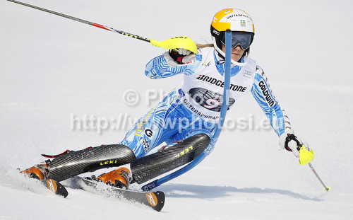 Ofterschwang ,Germany - 04.03.2012 : Frida Hansdotter of Sweden skiing in first run of women slalom race of Audi FIS Alpine skiing World cup in Ofterschwang, Germany. Women slalom race of Audi FIS Alpine skiing World cup was held in Ofterschwang, Germany, on Sunday, 4th of March 2012. Photo by: Primoz Jeroncic