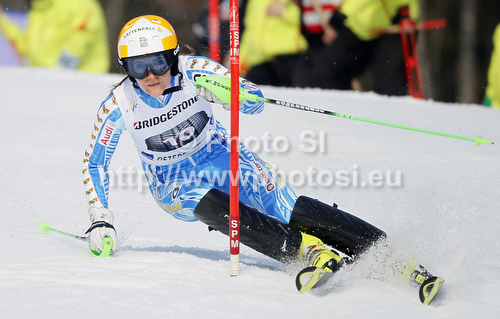 : Therese Borssen of Sweden skiing in first run of women slalom race of Audi FIS Alpine skiing World cup in Ofterschwang, Germany. Women slalom race of Audi FIS Alpine skiing World cup was held in Ofterschwang, Germany, on Sunday, 4th of March 2012.