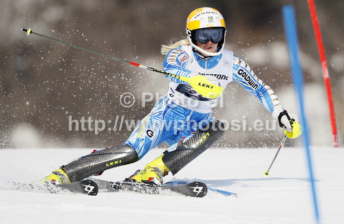 Ofterschwang ,Germany - 04.03.2012 : Emelie Wikstroem of Sweden skiing in first run of women slalom race of Audi FIS Alpine skiing World cup in Ofterschwang, Germany. Women slalom race of Audi FIS Alpine skiing World cup was held in Ofterschwang, Germany, on Sunday, 4th of March 2012. Photo by: Primoz Jeroncic