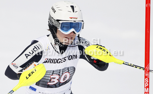 : Katharina Duerr of Germany skiing in first run of women slalom race of Audi FIS Alpine skiing World cup in Ofterschwang, Germany. Women slalom race of Audi FIS Alpine skiing World cup was held in Ofterschwang, Germany, on Sunday, 4th of March 2012.