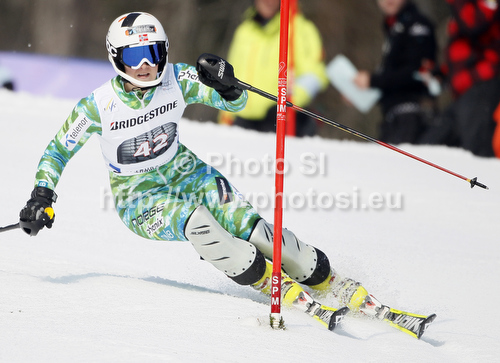 : Nina Loeseth of Norway skiing in first run of women slalom race of Audi FIS Alpine skiing World cup in Ofterschwang, Germany. Women slalom race of Audi FIS Alpine skiing World cup was held in Ofterschwang, Germany, on Sunday, 4th of March 2012.