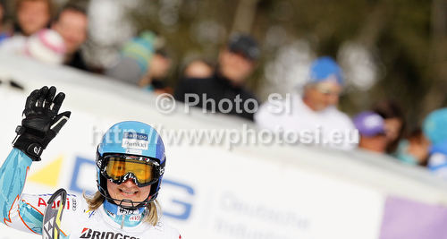 Ofterschwang ,Germany - 04.03.2012 : Fourth placed Tanja Poutiainen of Finland reacts in finish of second run of women slalom race of Audi FIS Alpine skiing World cup in Ofterschwang, Germany. Women slalom race of Audi FIS Alpine skiing World cup was held in Ofterschwang, Germany, on Sunday, 4th of March 2012. Photo by: Primoz Jeroncic