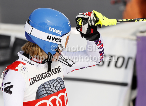 Ofterschwang ,Germany - 04.03.2012 : Third placed Marlies Schild of Austria reacts in finish of second run of women slalom race of Audi FIS Alpine skiing World cup in Ofterschwang, Germany. Women slalom race of Audi FIS Alpine skiing World cup was held in Ofterschwang, Germany, on Sunday, 4th of March 2012. Photo by: Primoz Jeroncic