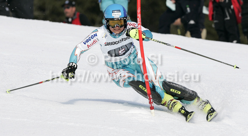 Ofterschwang ,Germany - 04.03.2012 : Tanja Poutiainen of Finland skiing in first run of women slalom race of Audi FIS Alpine skiing World cup in Ofterschwang, Germany. Women slalom race of Audi FIS Alpine skiing World cup was held in Ofterschwang, Germany, on Sunday, 4th of March 2012. Photo by: Tomaz Jeroncic