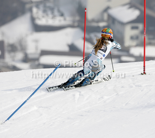 : Resi Stiegler of USA skiing in second run of women slalom race of Audi FIS Alpine skiing World cup in Ofterschwang, Germany. Women slalom race of Audi FIS Alpine skiing World cup was held in Ofterschwang, Germany, on Sunday, 4th of March 2012.
